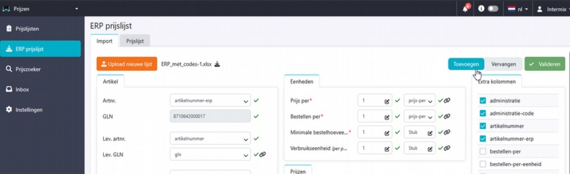 ERP data is imported to compare prices with supplier prices. The imported list replaces the current list. A new function has been added: you can now choose to keep the current list or add ERP data to it, making the list more complete.