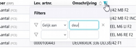 You can now filter columns within the price module, for example by article number, to quickly find the desired articles.