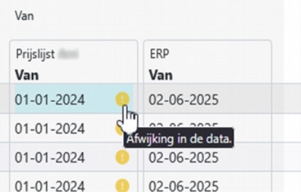 A notification is displayed when data from your ERP price differs from supplier's data. This is indicated by a yellow exclamation mark, making it immediately clear which values do not match and require attention.